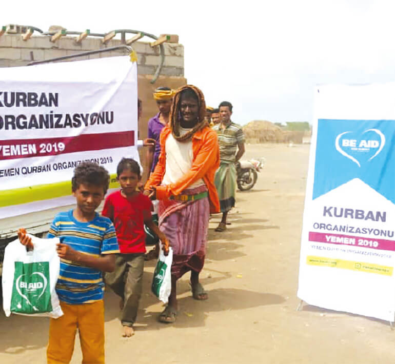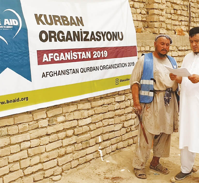 L'association BE AID mène des activités d'abattage et de distribution de qurbans par procuration dans de nombreuses régions du monde, en particulier dans différents pays d'Afrique et d'Asie. Elle soutient également des écoles et des centres éducatifs qui tentent de dispenser un enseignement dans des conditions difficiles.